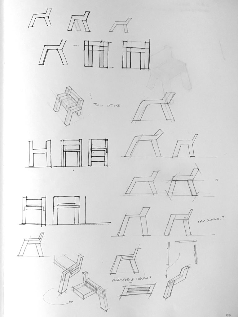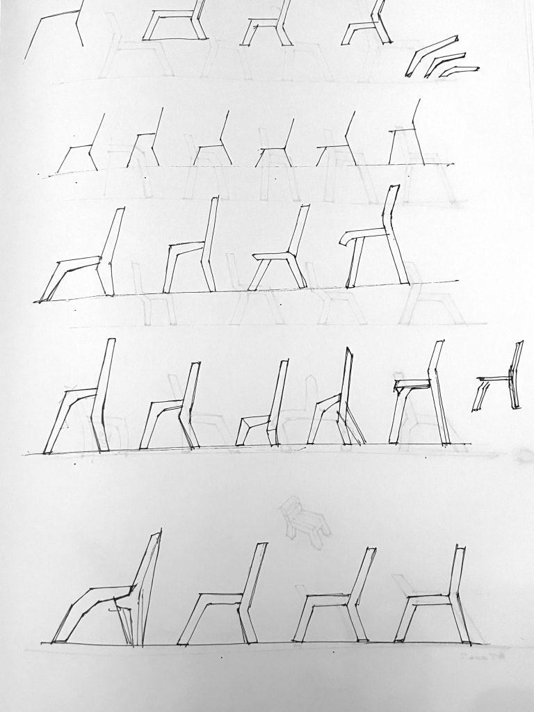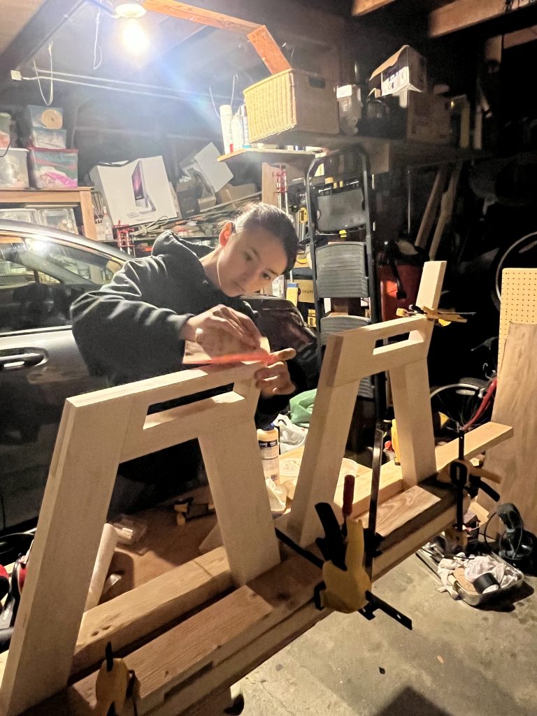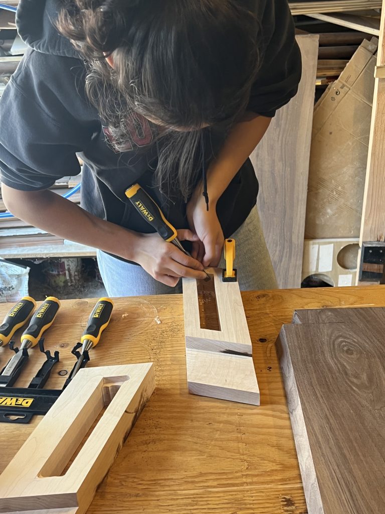 I think about my posture the most when I’m playing cello. I explored a range of side and front profiles and learned about joinery possibilities to figure out how to make it all come together. Before moving to prototyping, I modeled my design in Solidworks to help visualize the assembly.