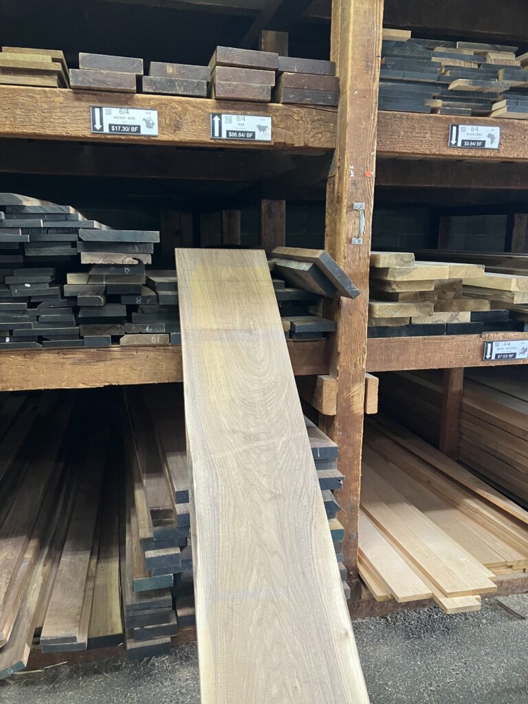 At the wood shop I picked out a beautiful board of Walnut with an eye that would become part of the seat.