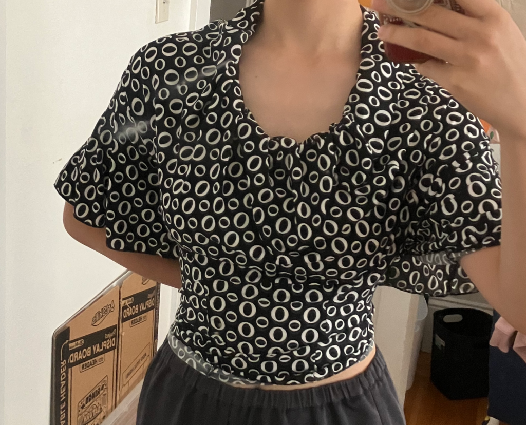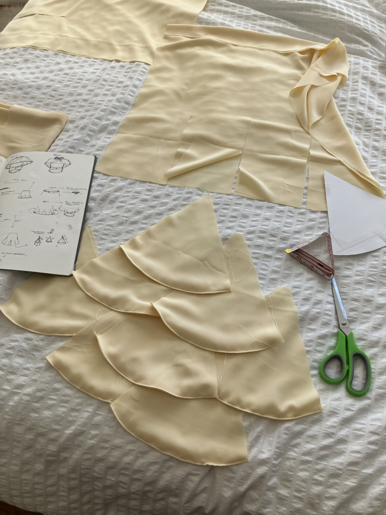 A repurposed skirt: pattern copied and remade with leftover fabric from building scrolls for my Chinese lion dance team in high school.